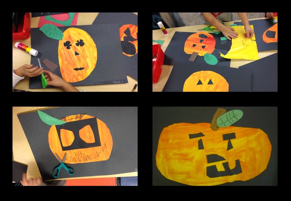 colors. In the following weeks, the students cut out pumpkins from their